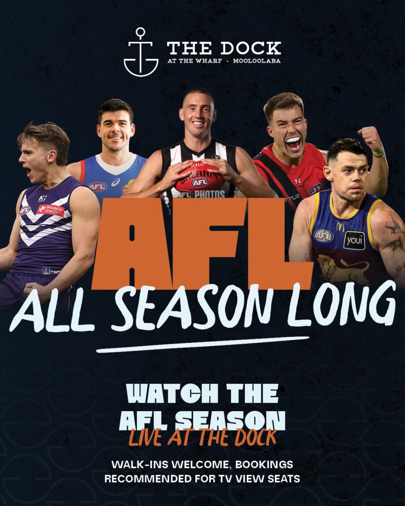 AFL season is here, and we’re showing every game live on the big screens at The Dock. From opening round through to finals, it’s the perfect place to catch the footy while soaking up the waterfront atmosphere.